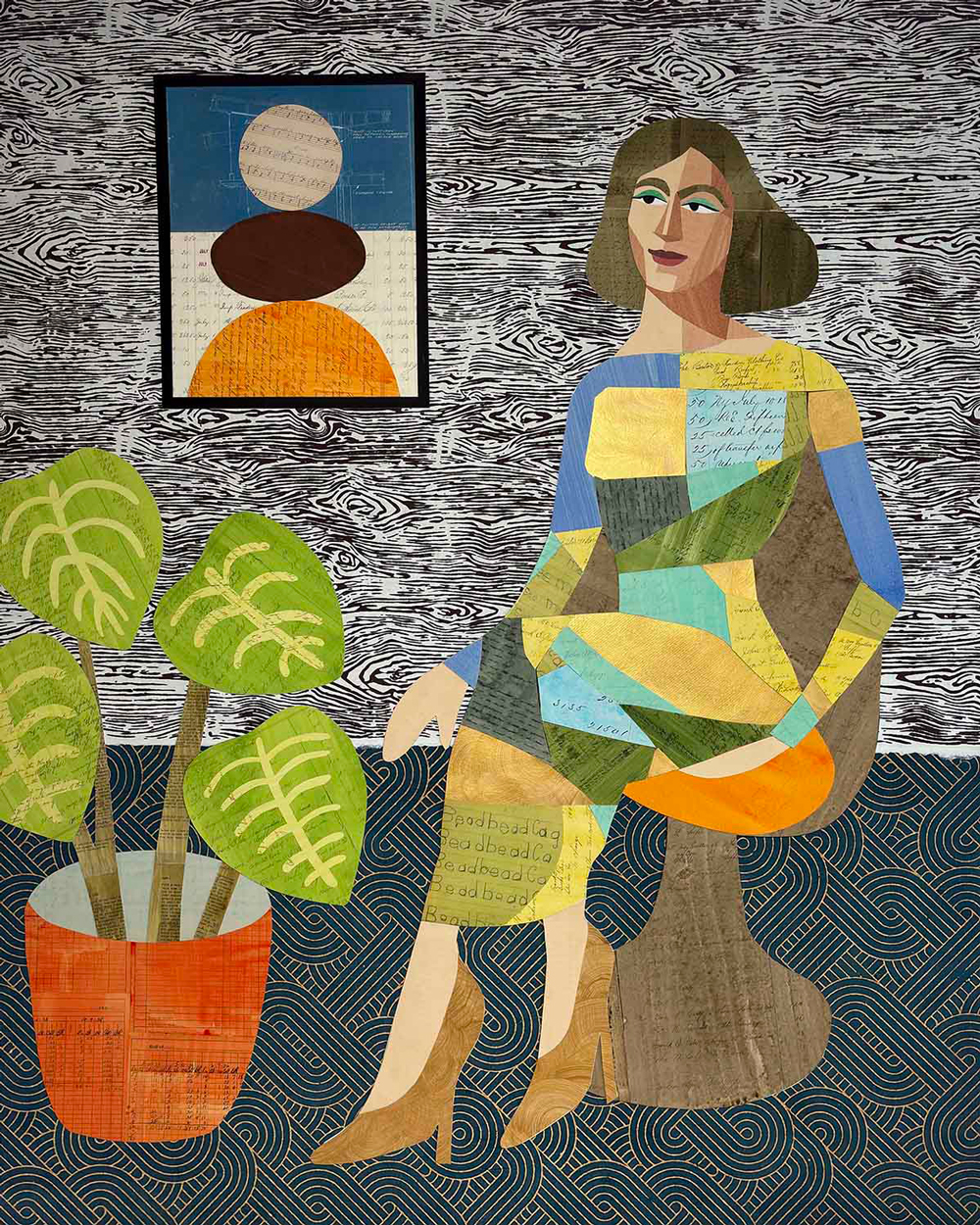 Emily Krill is a Pittsburgh-based collage artist, represented by ZYNKA Gallery, whose large-scale works are constructed from antique paper ephemera collected over years of dedicated searching. Her source materials span the 1800s through the 1970s and include ledgers, letters, blueprints, and children’s lessons, chosen as much for their historical context as for their visual and tactile qualities.