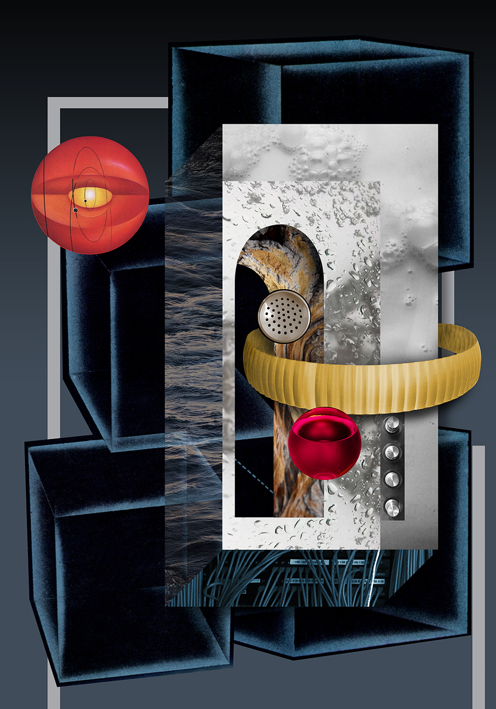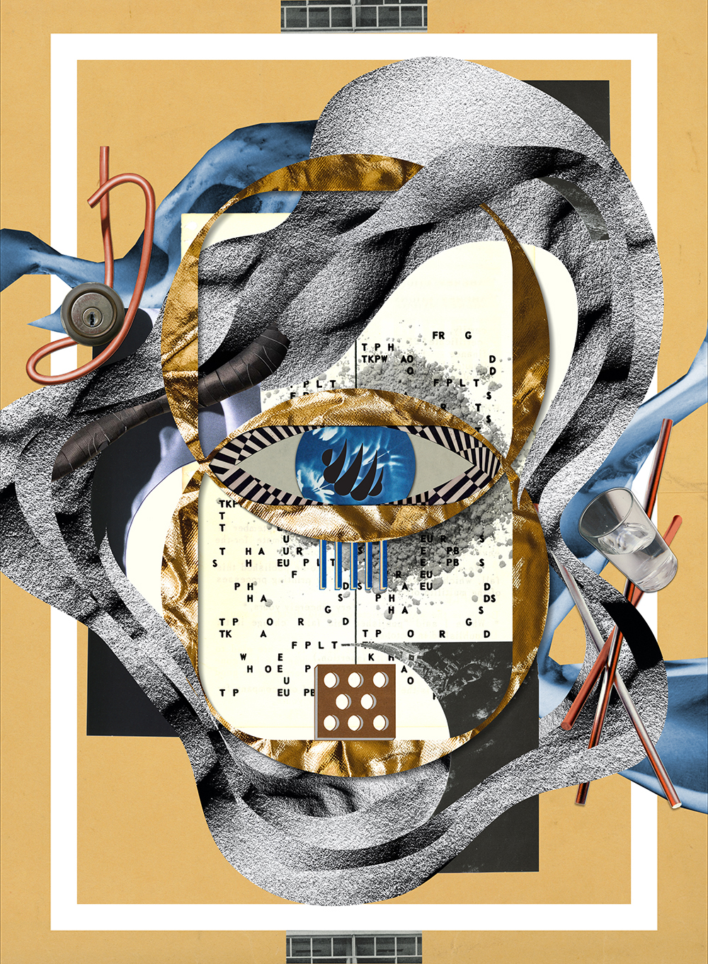 Collage operates as both method and structure, allowing unrelated elements to occupy the same space and produce a multiplicity of associations. Drawing on the historical lineage of collage, particularly Dada and Constructivism, the work uses these strategies to examine the tensions and contradictions that shape contemporary society.
