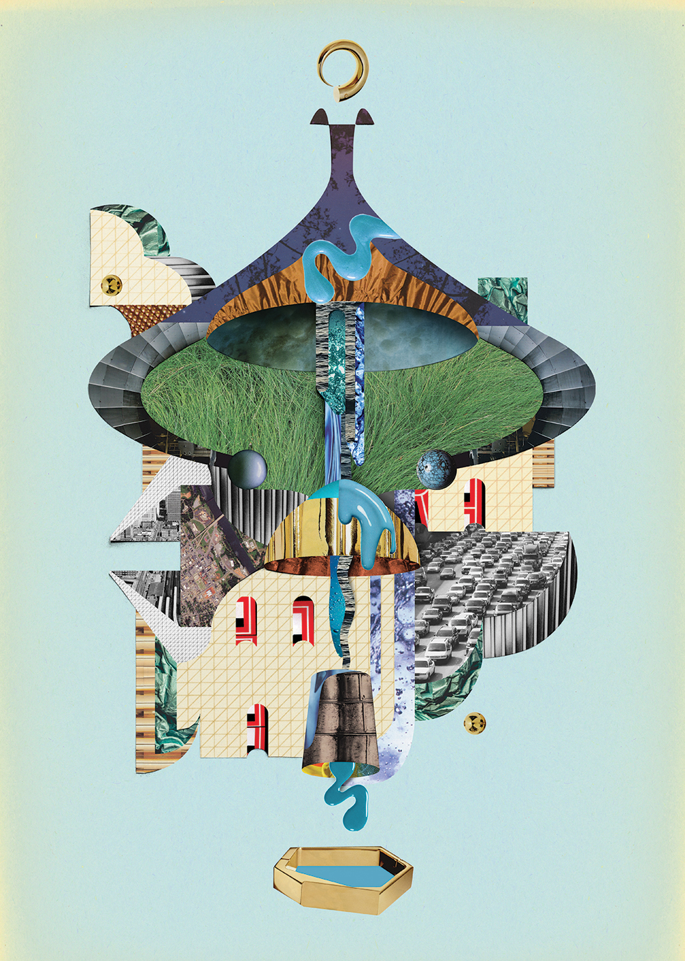 Measuring Time 24″x18″; analog and digital collage, paper ephemera, magazines, photography; 2020