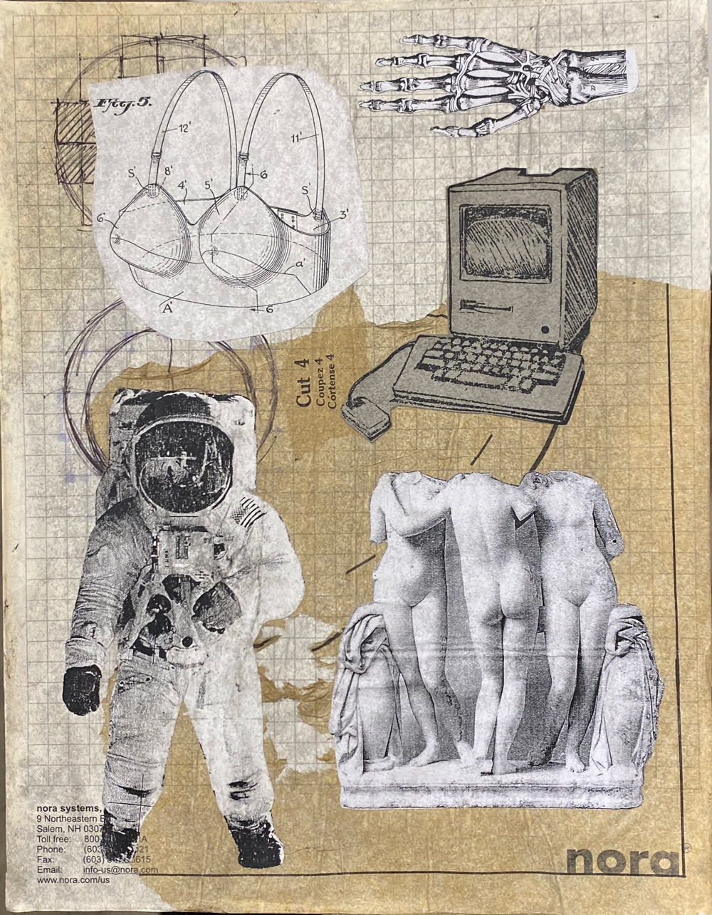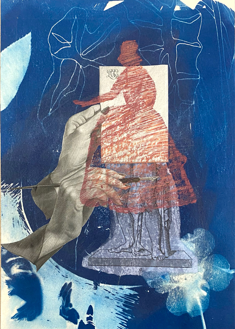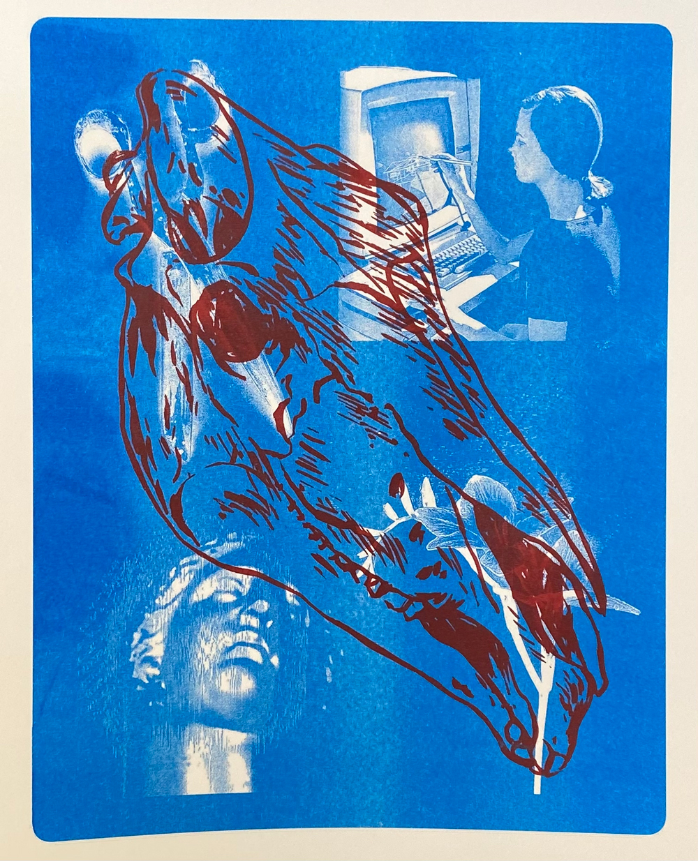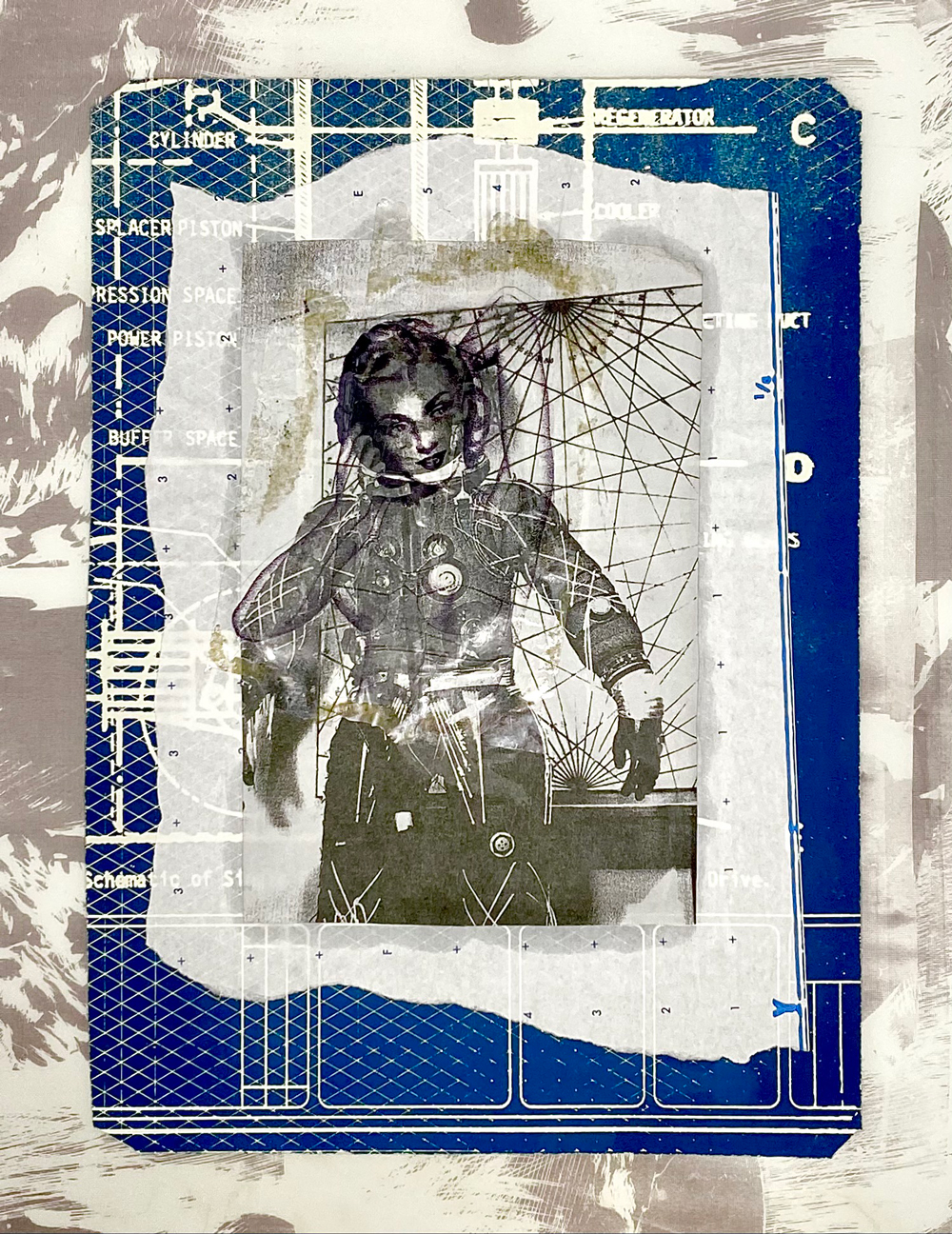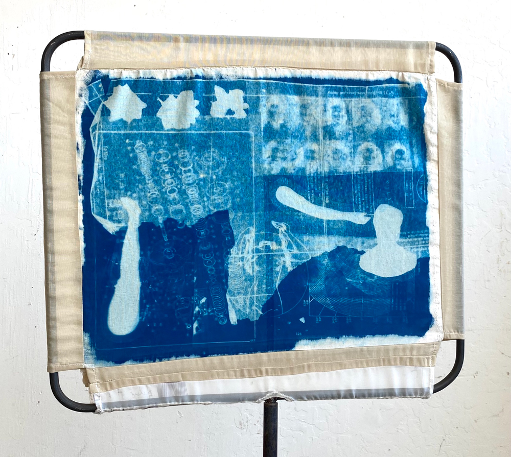 ![]() 9″x6″; cyanotype, found imagery, crayon; 2024 Whitney J. Humphreys STATEMENT In central focus within my work are the speculative visions of the future that are built out of the ideals of our cultural past. Connecting conversations about machines with the politics of gender, my practice addresses how oppressive structures are built into the tools we rely on, where bodies are rendered machine-like through service labor in dangerous post-human fantasies. Through a collage of metal sculpture, fiber art, and printing traditions, my work engages with historically gendered forms of engineering and modes of mechanical reproduction. I present printed media, garment construction, and information technologies as linked contributors in the production of cultural identities, while employing found, manipulated, and printed imagery to generate them. In these ways, the work’s content and processes address the ways that idealized gender performances are produced and disseminated across art historical tradition and popular media, often deployed as a tool for bodily control. BIO Whitney Humphreys is a San Francisco Bay Area artist and teacher. Her research-based, multi-media practice fuses collage with traditional printmaking, fiber art, and installation in works that address how visual culture and information technologies influence the production of gender identity. She graduated from San Francisco Art Institute’s Dual Degree program, receiving an MA and MFA, where she earned awards in Printmaking, Metal Sculpture, and Thesis Writing achievements. She is currently a Resident Tattoo Artist at Black Serum in San Francisco and leads courses in printmaking and design at Bay Area community colleges. She has taught at schools including the University of California Santa Cruz, San Francisco City College, and Berkeley City College. She has exhibited throughout the Bay Area and across the U.S. ARTIST CONTACT IMAGES ![]() 17″x11″; risograph & screenprint; 2025 ![]() 24″x28″; cyanotype collage on found fabric in welded steel frame; 2023 ![]() 10″x8″; found imagery, linocut print, sewing pattern; 2023 ![]() 30″x20″; screenprint, cyanotype, found imagery, image transfer; 2022 |