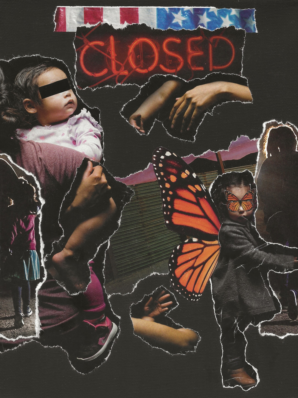 “Deadly Crossing” by maryhope|whitehead|lee is a response to militarization of the Sonoran/Arizona Borderlands and the dehumanization and criminalization of migrants. It includes poems, collage art, and needle work. The poems (PhotoPoems) are superimposed over photographs of the wall and Sonoran Desert. The collages have been transferred to pañuelos (handkerchiefs). The use of Pañuelos is inspired by the Fuentes Rojas movement in Coyoacán, Mexico where people gather in community every Sunday and embroider pañuelos that name and commemorate the lives of the kidnapped, murdered, and disappeared. Details of the violence are embroidered in red floss on white handkerchiefs which also include the name of the person who embroidered the information and the record number of the police report.