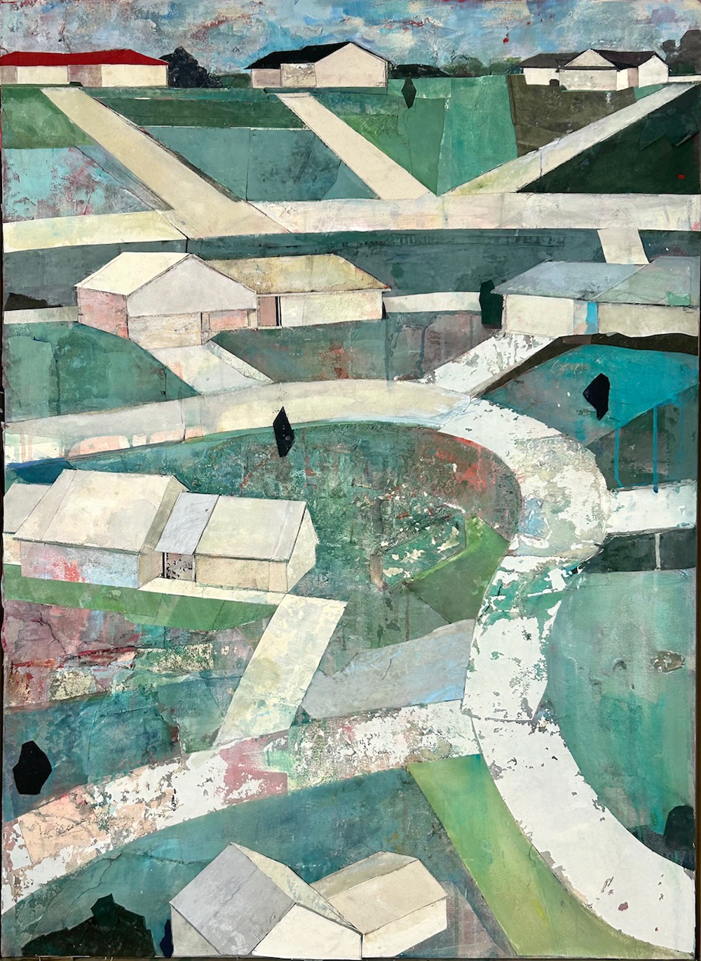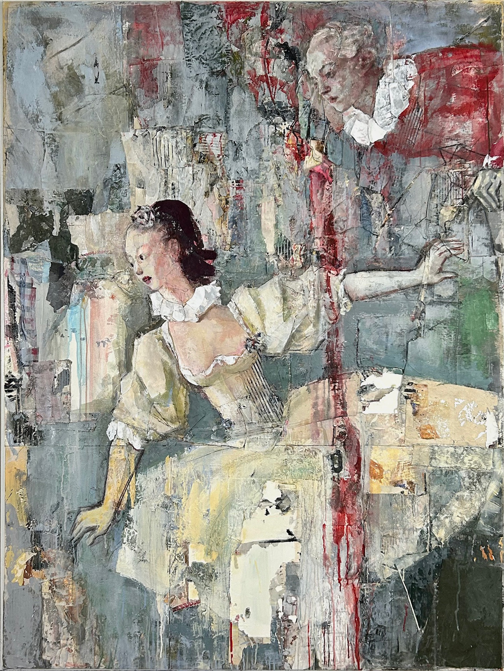 48″x35″; acrylic and fabric collage on canvas; 2025. Courtesy of the artist.