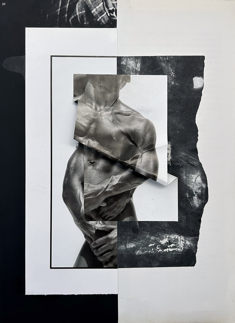 “Folded Light” presents new artworks by Steve Tierney that explore the human figure through collage. Built from layers of photographic imagery and torn paper, the assembled images transform familiar bodies into abstract compositions. The figures feel both present and unsettled, drawing attention to what is shown, what is hidden, and what feels exposed.