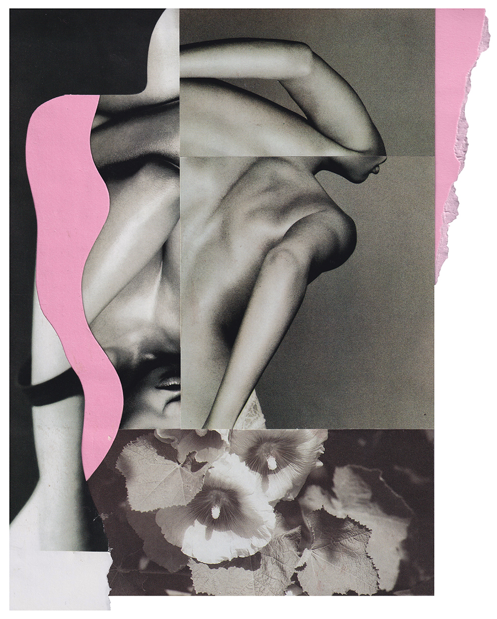 Steve Tierney is a mixed media artist and designer working primarily with collage. His artworks are refined and minimal—generally figurative—and made from just a few images sourced from vintage magazines, photo journals, and original photography. His approach is carefully considered, allowing small shifts in form or detail to carry meaning. Faces and bodies appear to fold, blur, or dissolve, suggesting movement and change rather than fixed identity.
