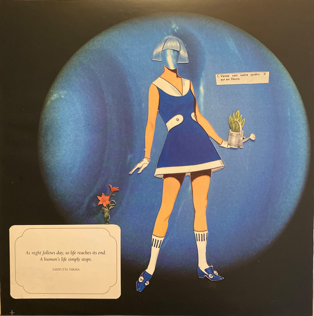 12″x12″; analog collage on paper with acrylic markers. Courtesy of the artist.