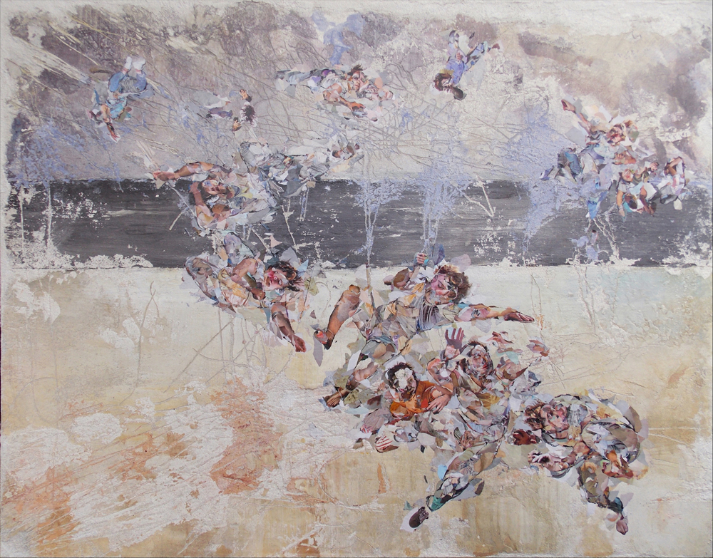 43.3″x55.1″; collage, paper on fresco tear; 2023. Courtesy of the organizers.