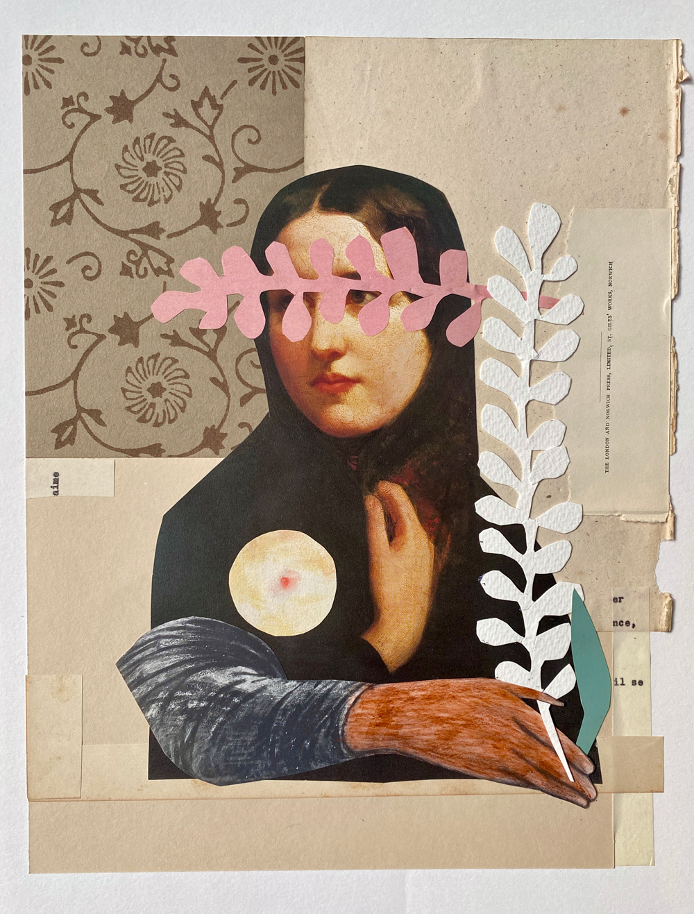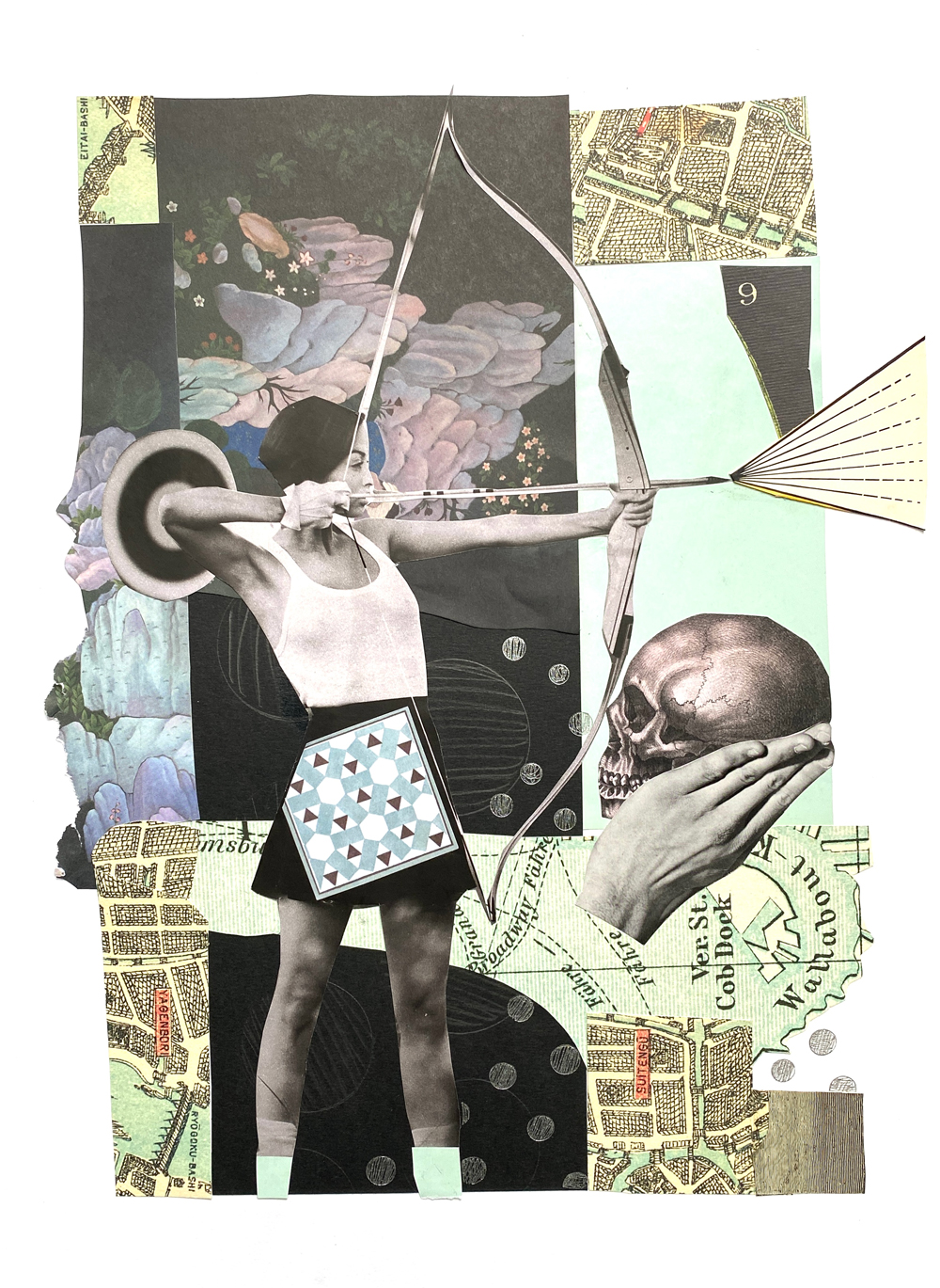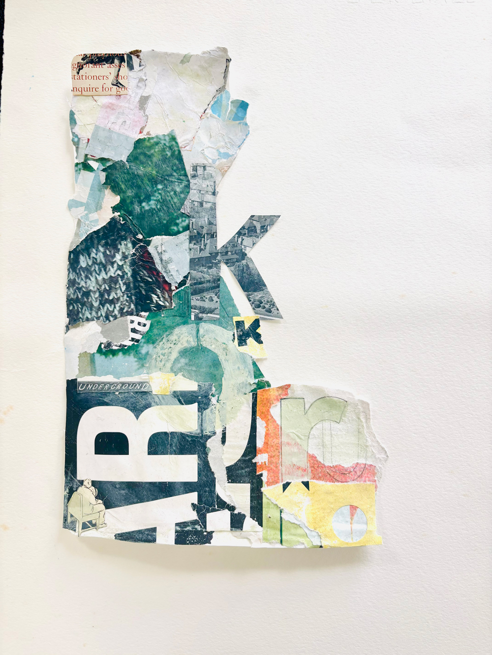 ![]() 11.7″x8.3″; maps, patterned and magazine papers; 2024 Emily Marbach STATEMENT My practice is rooted in a process of intuitive discovery rather than rigid planning. Working primarily in analog collage, I allow the imagery to lead the way, finding connections in the chaos of my studio. I am a collector of fragments—torn pages, discarded publications, and chromatic remnants—treating the hunt for materials as a vital part of the creative act. This can take me anywhere from an urban wall, hanging an exhausted fly-posted concert poster, to the swap shop in a rubbish dump in Connecticut. By juxtaposing elements of nature, politics/feminism, and portraiture, I explore the tension between found text and the breathing room of the white page, the weight of ancient texts with the frivolity of modern images, and the secular with the religious. BIO Emily Marbach is an American figurative collagist living in London. Most notably, she has exhibited and sold paintings and a collage at the Royal Academy Summer Exhibitions for two summers running. She was represented by Long & Ryle. Her work was exhibited with the shortlisted winners of the Ashurst Prize. In the past several years, Emily’s collages have appeared in several books, such as Collage Care, Traditions, and Collage Your Life. And in publications such as Contemporary Collage Magazine and Cut Me Up Magazine. Most recently, she has had a handful of collages hung at the London showroom of Love Your Home. In May 2025, she was ArtUltra’s Artist of the Month. She took part in “The Ascent of Man” group exhibition in Edinburgh at the House of Smalls. She had a collage in “Beauty Through the Eyes of Artists,” a group exhibition in Montmartre, Paris. In 2024, she had a collage in Turin at the imagined architecture exhibition through Faiv Officina. Marbach also participated in the Slovenian collage festival in Kranj, that year, called Kaos. After having such an interesting experience in Sanquhar at the first Kolaj residency there, she was chosen in 2025 for Contemporary Collage Magazine’s inaugural residency in Hackney Wick. Emily is the author of The Collage Haggadah. ARTIST CONTACT [click to email] IMAGES ![]() 8.3″x11.7″; painted, found, patterned and crafted papers; 2024 ![]() 11.7″x8.3″; patterned, drawn, crafted, and vintage papers; 2023 ![]() 8.3″x5.8″; book pages; 2023 ![]() 11.7″x8.3″; painted papers, stencilled letters, advertising poster; 2025 |