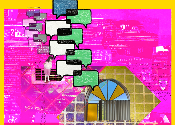 Stay Beautiful 8.5″x11″; analog assets intervined digitally (digital collage); 2025. Courtesy of the artist.Reporte (Report) 8.5″x11″; analog assets intervined digitally (digital collage); 2025. Courtesy of the artist.El Chisme (Gossip) 8.5″x11″; analog assets intervined digitally (digital collage); 2025. Courtesy of the artist.Ode to Mount Carmel Church 8.5″x11″; analog assets intervined digitally (digital collage); 2022. Courtesy of the artist.
