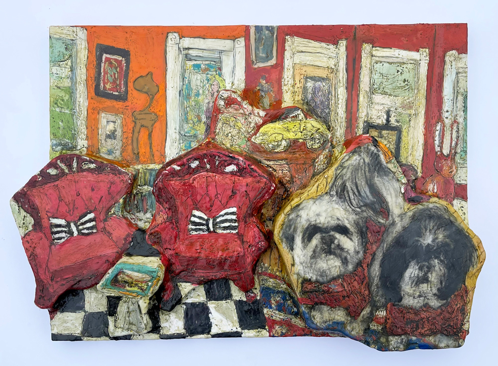 ![]() 12″x9″; acrylic, graphite, acetate on paper; 2024 Marcie Wolf-Hubbard STATEMENT My work explores memory, place, and the constructed environment through collage, encaustic, and mixed media. I build layered surfaces from paper, drawing, and reclaimed materials, assembling fragments into textured compositions that blur the boundaries between painting, collage, and relief sculpture. Each piece develops through accumulation—cutting, layering, scraping, and reworking—so that history remains visible within the surface. Rooted in drawing, my practice often begins with observations of interiors, architecture, birds, and the natural world. These forms evolve into intimate spaces, small structures, and narrative fragments that suggest shelter, vulnerability, and connection to place. In recent years, my work has expanded from two dimensions into sculptural and diorama-like constructions, extending collage into physical space. Concern for the environment informs both subject and process. I frequently incorporate found and sustainable materials—cardboard, paper pulp, and reclaimed wood—allowing the work itself to embody reuse and transformation. BIO Marcie Wolf-Hubbard is a mixed media and encaustic artist whose work combines collage, drawing, and sculptural construction to explore memory, architecture, and the natural world. Her layered surfaces and small-scale structures merge painting and collage with relief and assemblage, extending two-dimensional processes into space. Her work has been exhibited widely on the East Coast and has been supported by numerous grants from the Maryland State Arts Council and the Arts & Humanities Council of Montgomery County, including residencies, project grants, and professional development awards. She is a recipient of the Nancy Frankel Artist Award. Wolf-Hubbard teaches workshops and classes at Glen Echo Park Partnership for Arts & Culture, Yellow Barn Studio & Gallery, and Smithsonian Associates. She is a member of Washington Sculptors Group and Teaching Artists of the Mid-Atlantic. ARTIST CONTACT EMAIL | WEBSITE | INSTAGRAM | FACEBOOK IMAGES ![]() 12″x9″; acrylic, photo transfer, ink, mixed media on paper; 2025 ![]() 12″x9″; acrylic, photo transfer, acetate, mixed media on paper; 2020 ![]() 12″x9″; water-soluble pastel, acrylic, graphite on paper; 2025 ![]() 13″x19″x3.5″; encaustic, charcoal, oil stick, paper mache, mat/cardboard on panel; 2025 |
