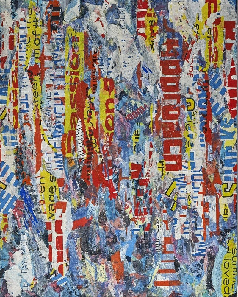 My work addresses the theme of ephemerality, and seeks the beautiful and the sublime in unexpected places. It evokes the unconventional beauty of weathered urban exterior surfaces that have accrued layers of posters, fliers, accidental mark-making, and graffiti. Of particular interest to me are urban walls, doorways, and advertisement posters, where layers of newly accumulated paper and text are partially torn away to reveal portions of what lies beneath the surface, alluding to remnants of the past and the present simultaneously. Layers of text and imagery emerge and recede, creating palimpsest surfaces that reflect the passage of time, exposure to the elements, and benign neglect.