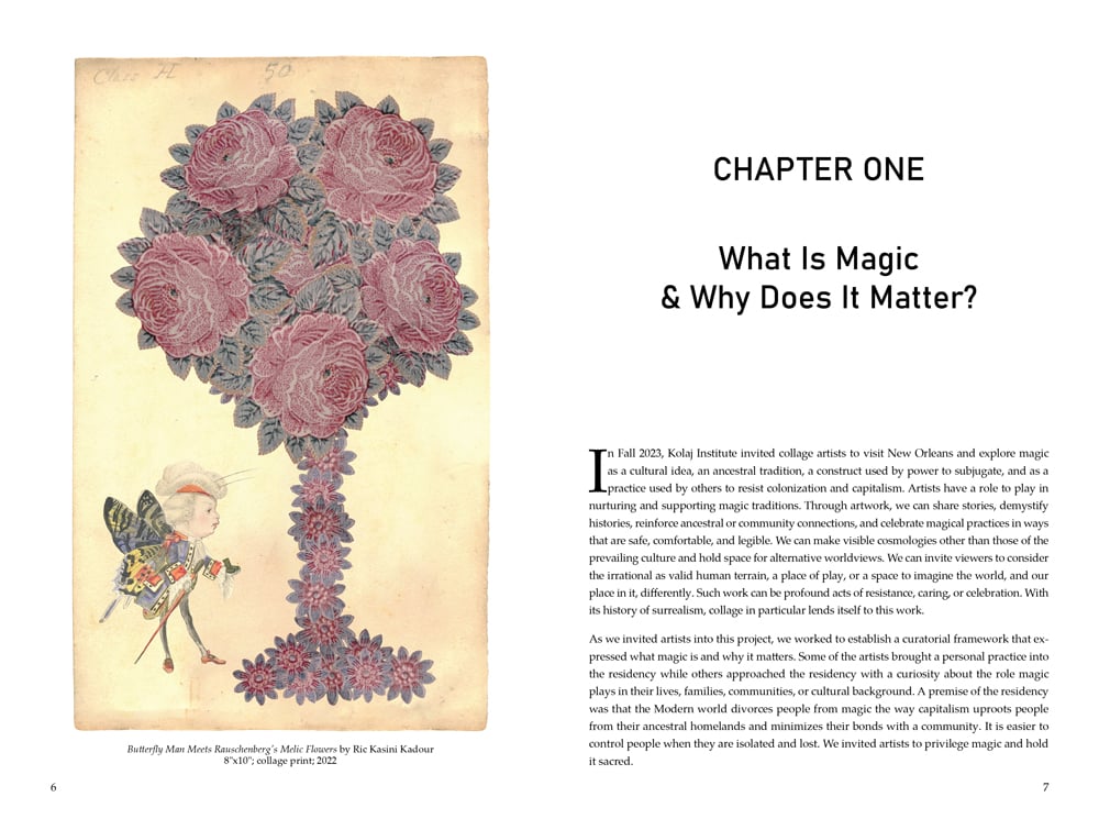 ![]() Magic in the Modern Worldby Kolaj and Ric Kasini Kadour“In our scientifically-minded modern world, little room is left for the mystical, the esoteric, and the magical, but we contend that such things, irrational as they may be, are fundamental to the human experience and necessary liminal spaces in which people experience joy, process trauma, or otherwise work through complicated emotions that a rationalistic society is not set up to handle if it doesn’t actively reject them.” Taking a broad view of magic and drawing from multiple histories, the book, Magic in the Modern World, proposes a way to think about magic in the 21st century, what it means to communities, and how it negotiates itself in systems of power. Generously illustrated, the book features the artwork of fifteen collage artists and dozens of historical images. ![]() The book asks, What role can artists play in nurturing and supporting magic traditions? Ric Kasini Kadour wrote, “Through our artwork, we can share stories, demystify histories, reinforce ancestral or community connections, and celebrate magical practices in ways that are safe, comfortable, and legible. We can make visible cosmologies other than those of the prevailing culture and hold space for alternative worldviews. At various times, such work can be profound acts of resistance, caring, or celebration. With its history of surrealism, collage in particular lends itself to this work.” ARTISTS ABOUT THE BOOK Purchase the book in US dollars HERE. |