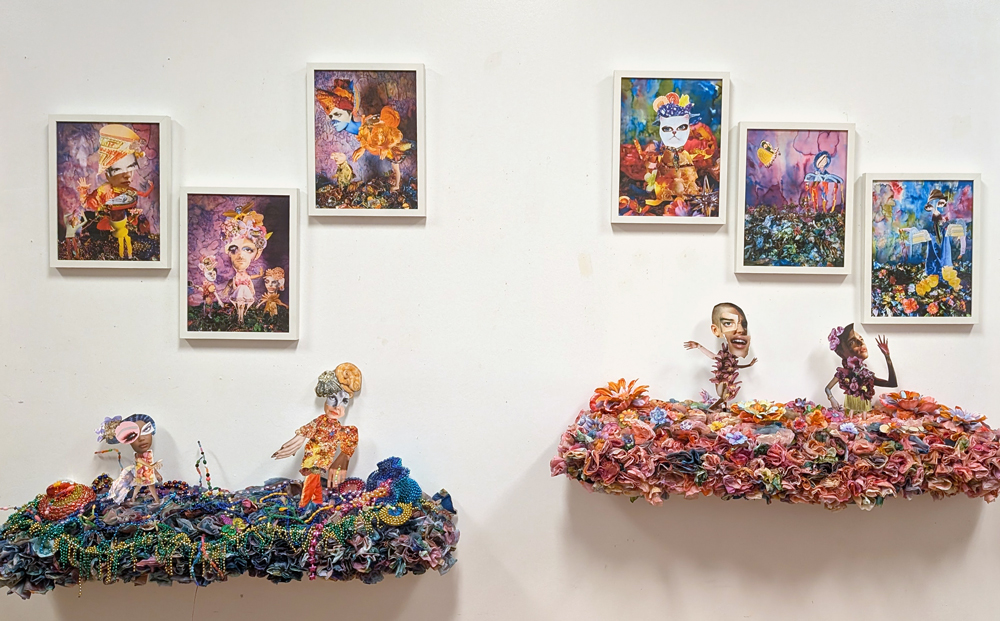 Kolaj Institute’s Folklore Collage Society project considers the role artists play in activating, transmitting, and celebrating folklore in communities as a form of cultural expression and a strategy for community resilience. In recent months, Kolaj Institute hosted a series of virtual and in-person residencies during which artists researched folklore globally and carnival in New Orleans, specifically. The exhibition “Folklore on Parade,” brings together the work of sixteen artists, each of whom are speaking to ideas about carnival and folklore and its role in our communities.
