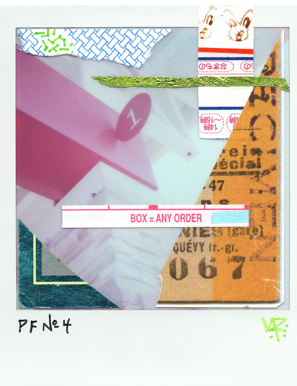 12″x9.5″; magazines, washi tape, darkroom print, letters, fortunes; 2025. Courtesy of the artist.