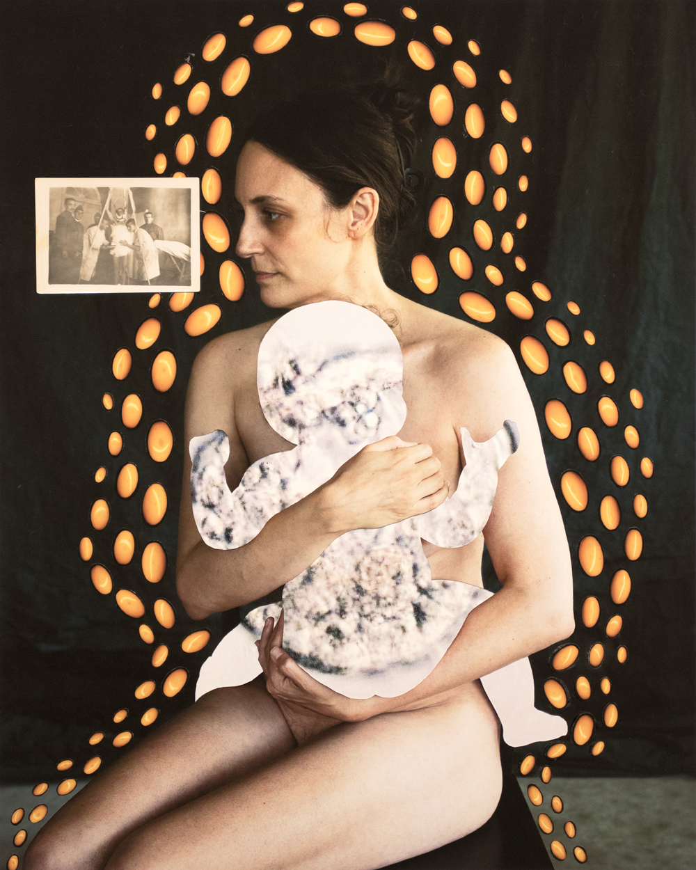 Artists are collaging pictures of themselves to make complex self-portraits. Stephanie Paine (Lafayette, Louisiana, USA) collages the silhouette of a child into a self-portrait to speak about pregnancy and fertility treatments. Adriana Gordillo (Saint Paul, Minnesota, USA) collages hormone packaging and photographs of herself to share her experience of perimenopause. Riley Kizziar (Everett, Washington, USA) collages self-portraits to “contend with identity through the facets of relationships, religion, belief systems, mental health, and gender.” Alejandra Spruill (Orange, Massachusetts, USA) thinks of herself “as a photographer who engages in collage, using the medium to explore how images can be recontextualized and how memory can live across materials.” Originally from Venezuela, Gerardo Morantes (New York, New York, USA) is a transdisciplinary artist and cultural worker whose artwork combines performance-based photography of himself and analogue collage.