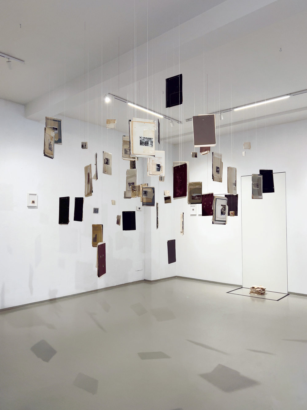 The show is anchored by three immersive installations that bring Misfeldt’s vision to life: An ever-changing wall of collages, rearranged and replaced over time, echoes the way memories shift each time we revisit them. A constellation of suspended collages invites visitors to literally walk through memory, experiencing it as sensation rather than record. A contemporary Wunderkammer—a cabinet of curiosities combining objects, mementos, and collages—encourages curiosity and play, turning memory into a creative laboratory. An artist’s book, crafted from a reconstructed family photo album, adds another layer—half archival, half imagined—blurring the boundary between what was lived and what is remembered.